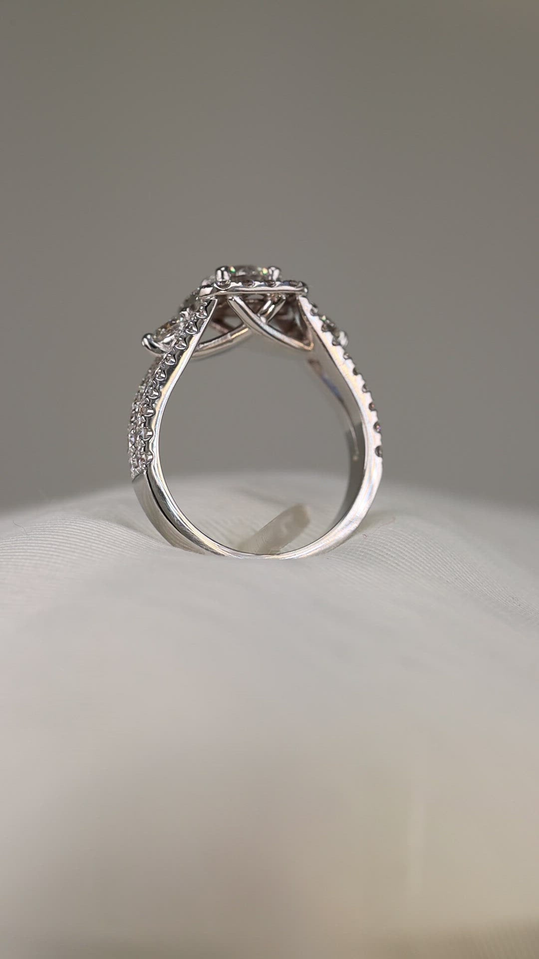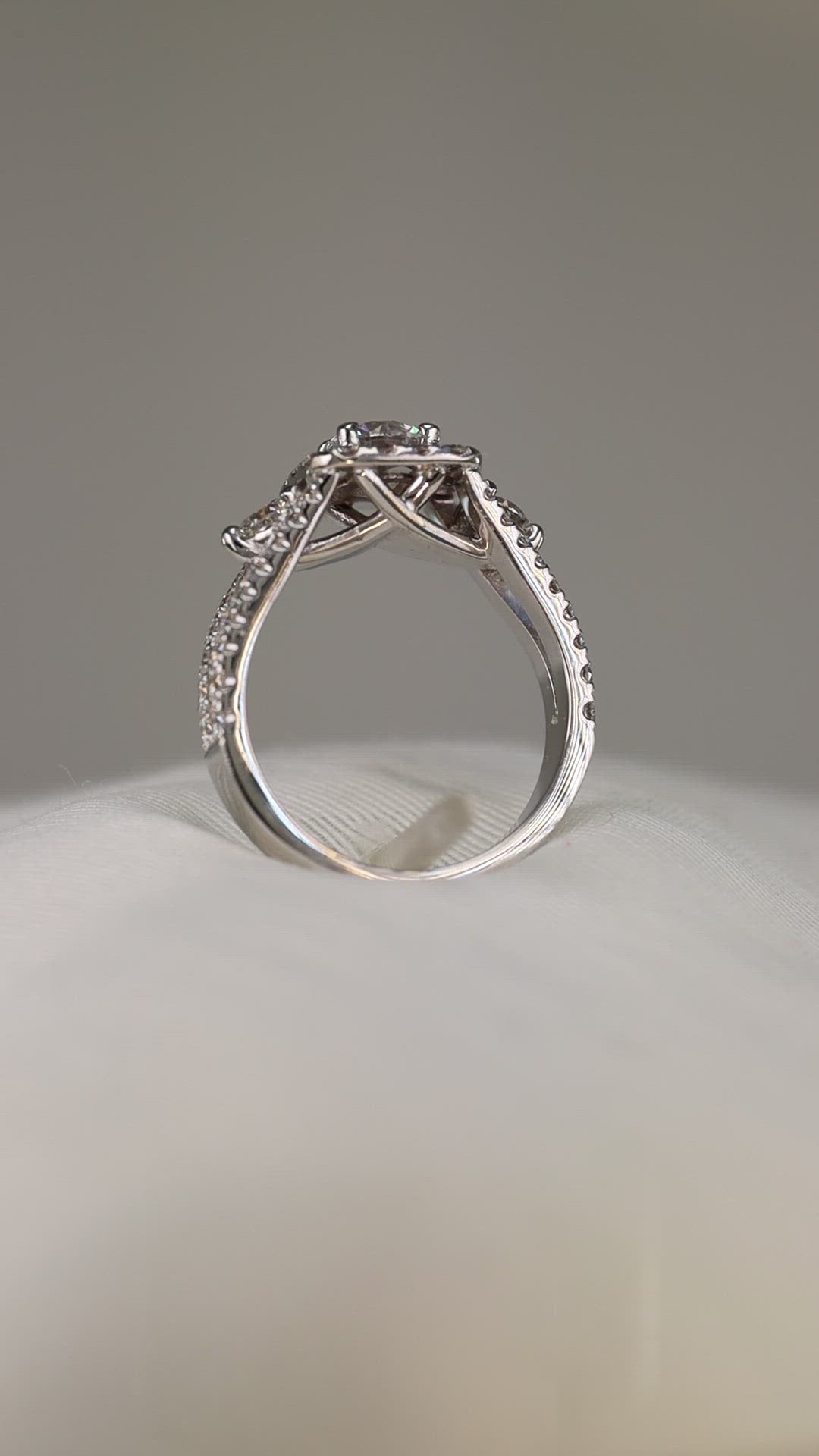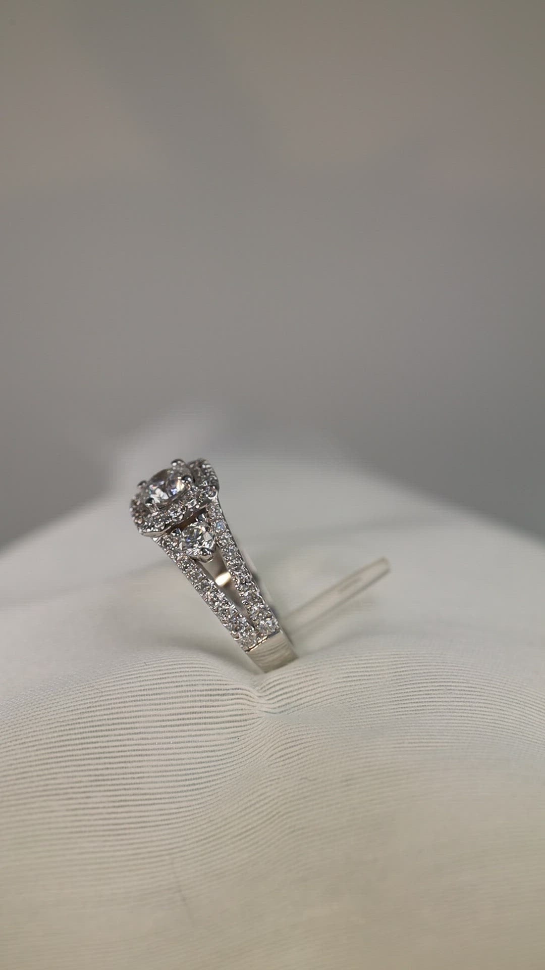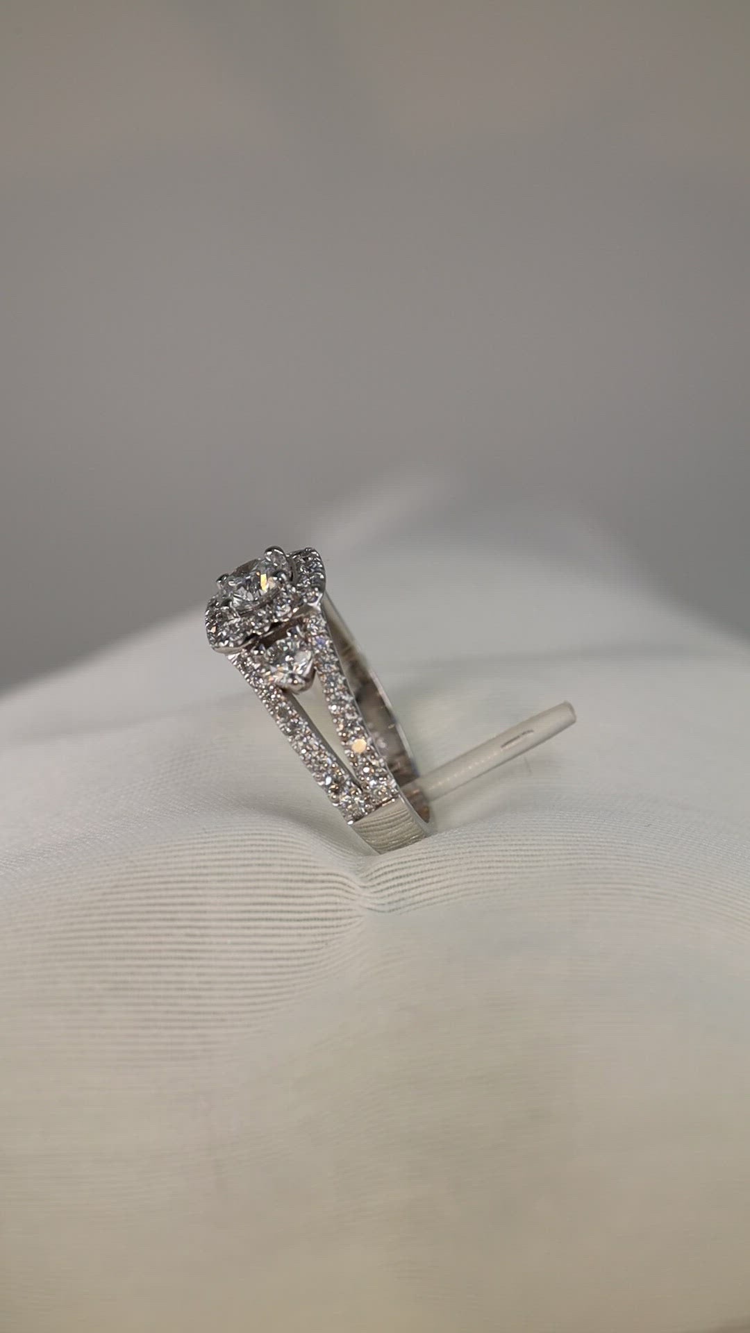 Lessard Coutu Jewellers exclusive design. This gorgeous 14KT bright white gold diamond engagement ring will forever sparkle with its elegant design containing: