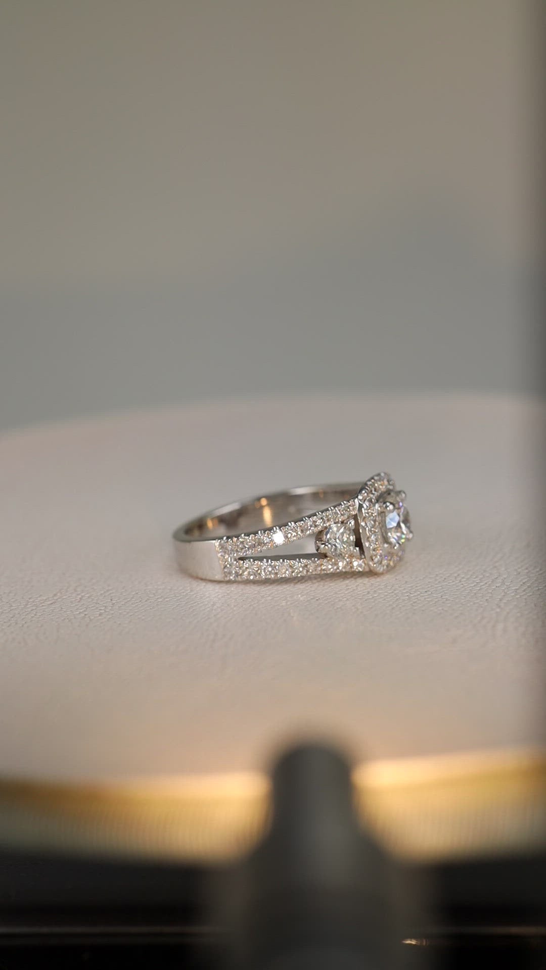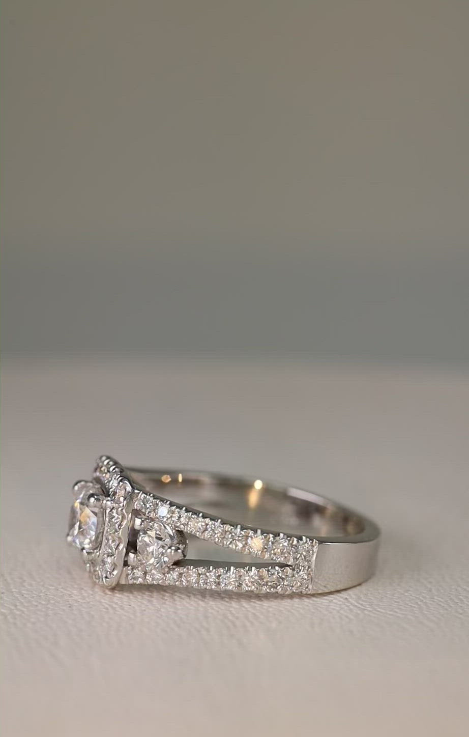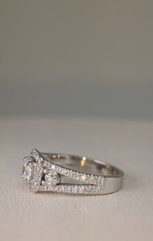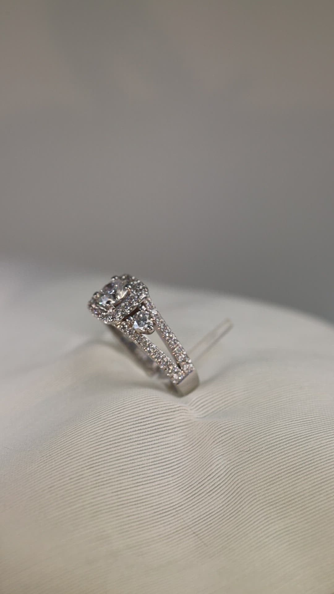 Lessard Coutu Jewellers exclusive design. This gorgeous 14KT bright white gold diamond engagement ring will forever sparkle with its elegant design containing: