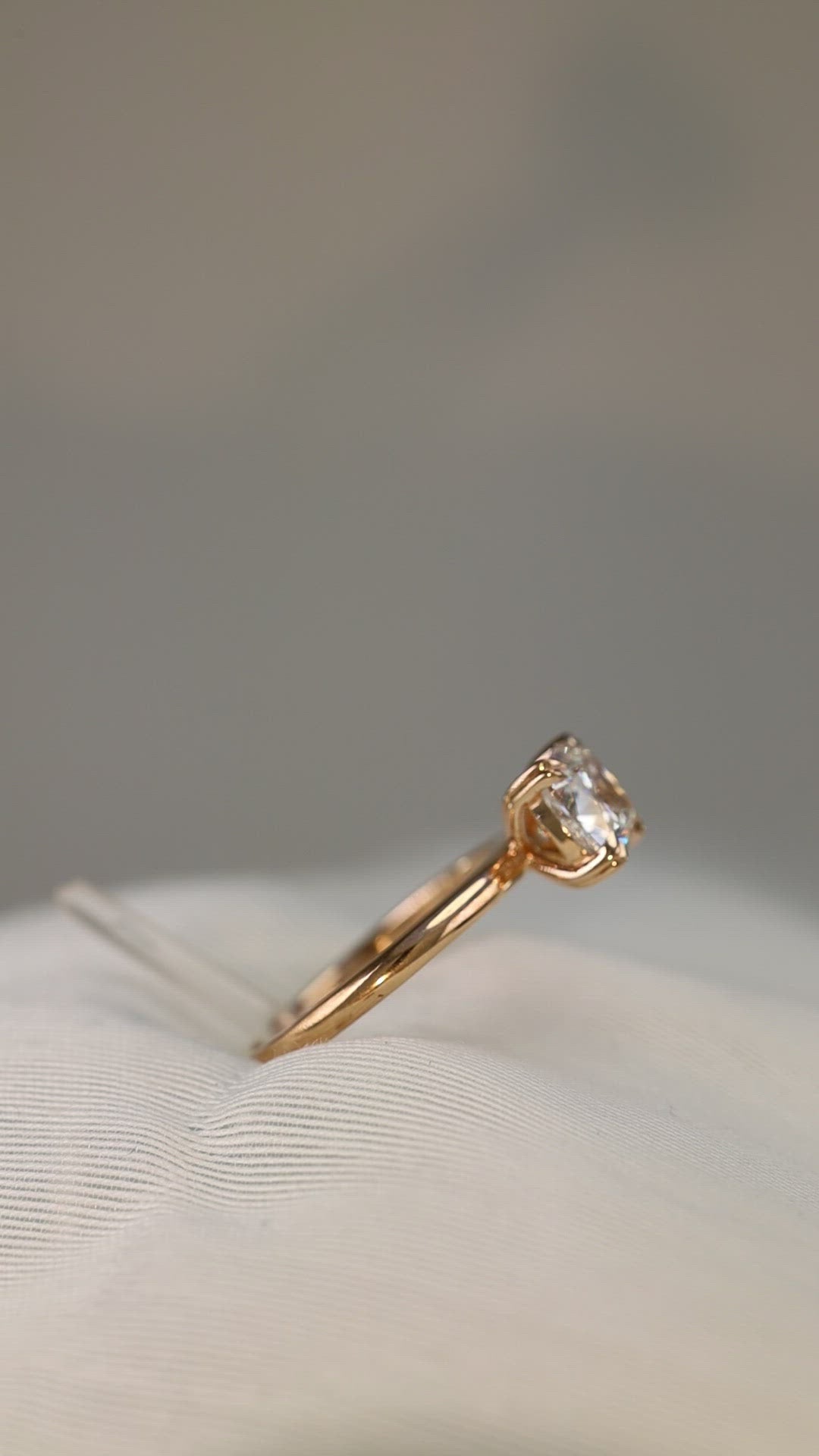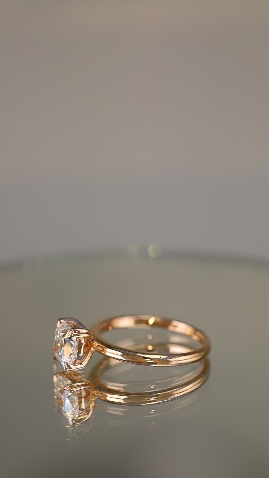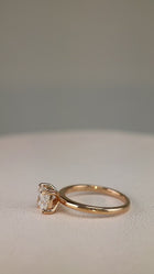 A classic 18KT rose gold engagement ring with a stunning double tiger claws that cradled a cushion cut diamond.